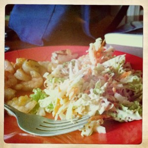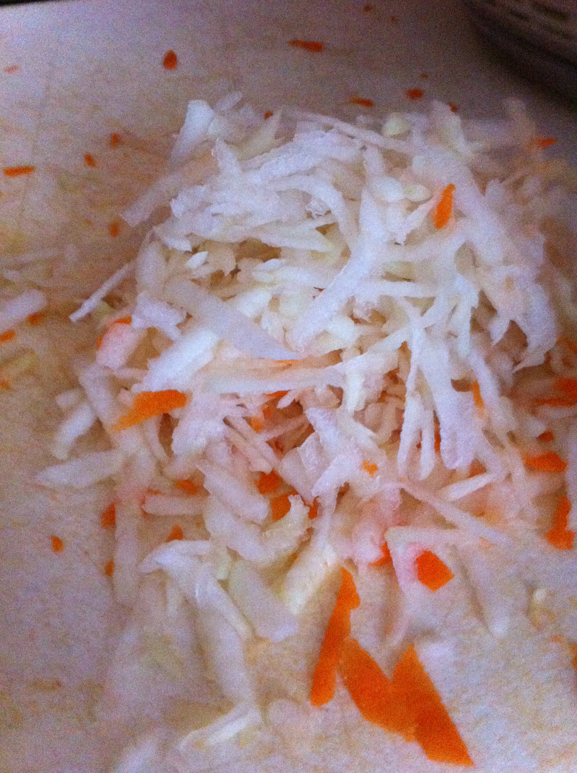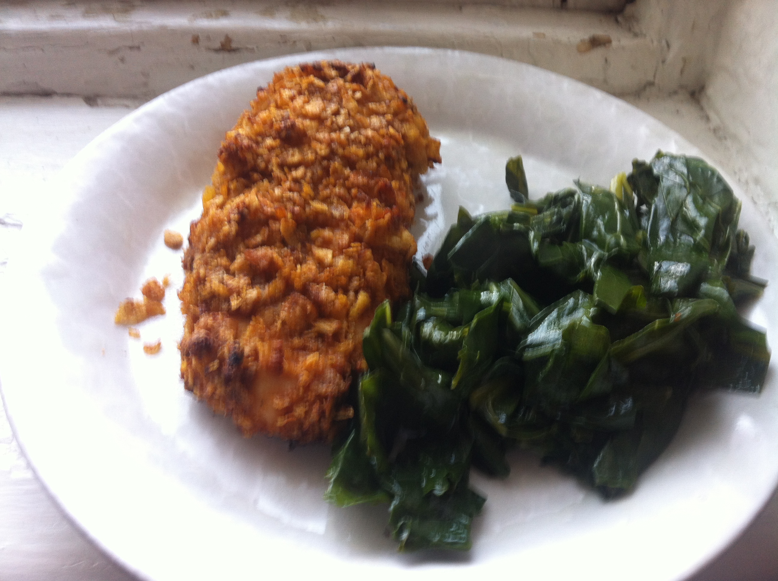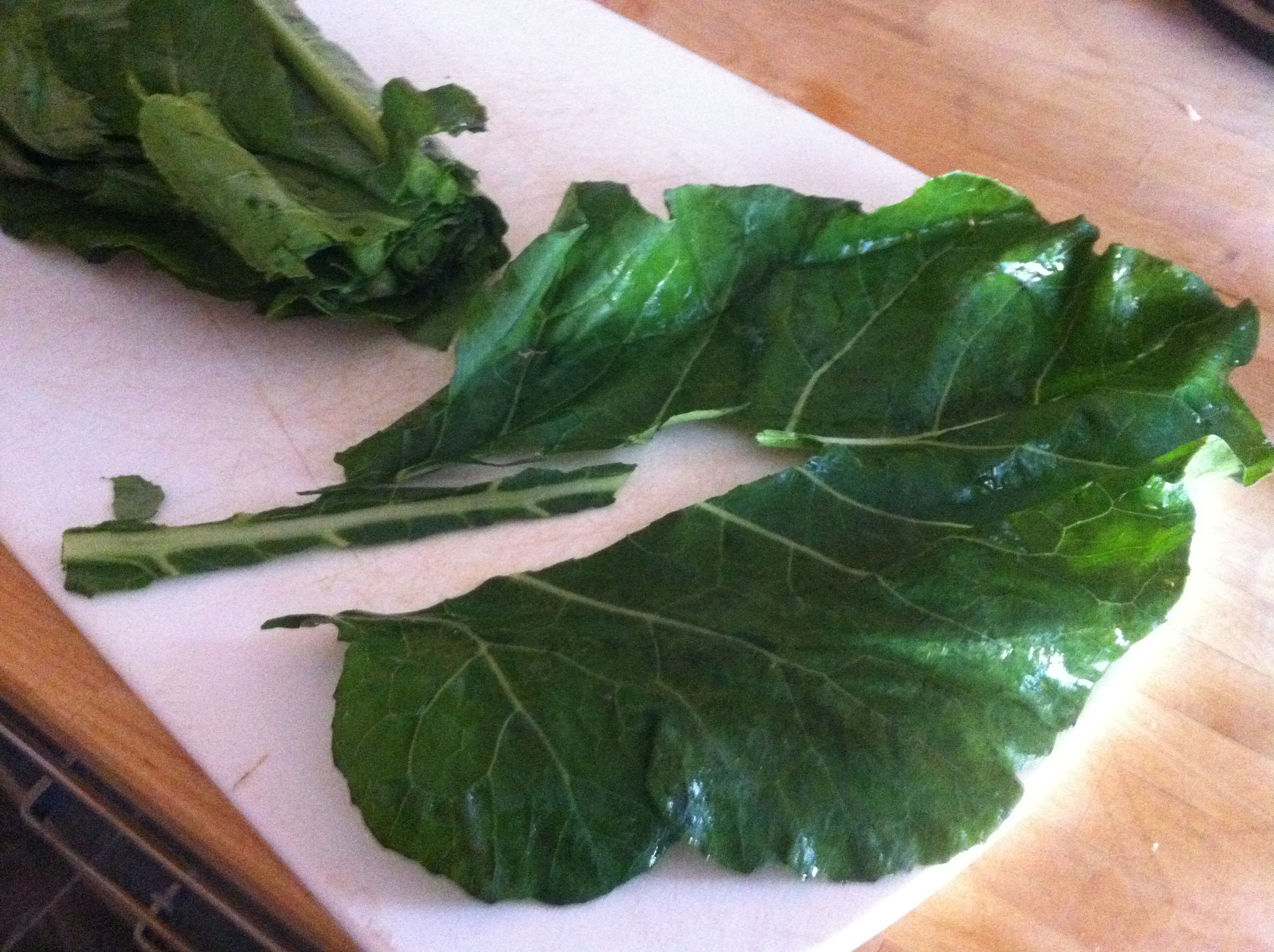 I also made a quick double-baked potato for dinner, which is another one of those staples that tends to escape people. It’s super easy. You rub olive oil and salt on an Idaho potato and bake it for an hour. Then take it out and slice it in half, and scoop out the potato innards. By the way it will be H-O-T so be careful.