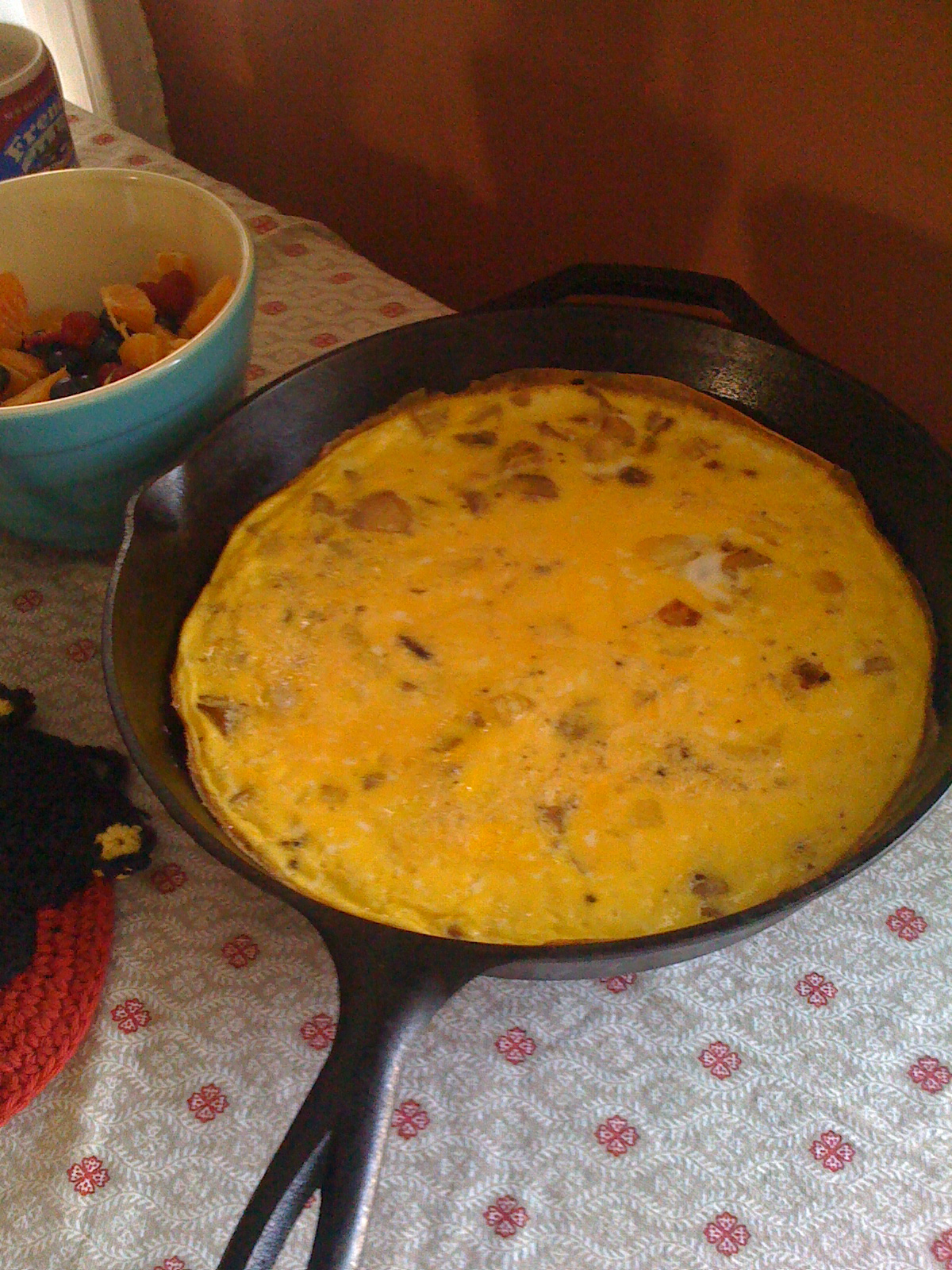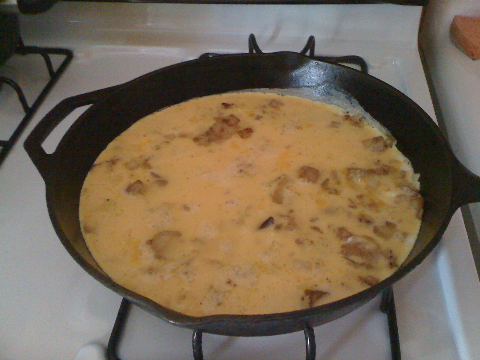 Note the leftovers, as well. If you’re going to make this, cook the potatoes before hand. Cut them small and roast them with olive oil and salt and pepper and garlic or whatever you like. Be sure to save at least a cup for the tortilla.